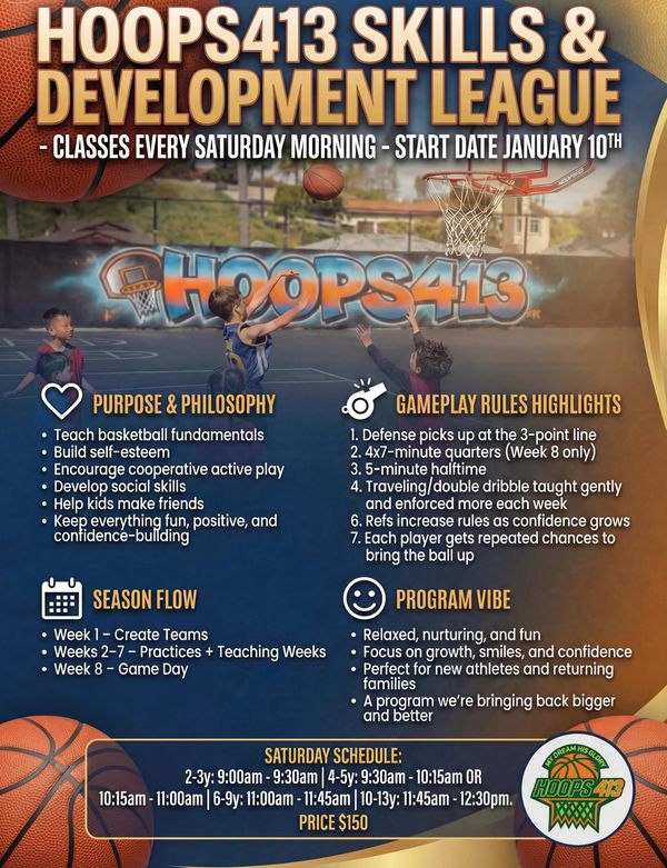 Before your payment, PLEASE make sure you have contacted Hoops413 to ensure open spots are available. Also, please email infohoops413@gmail.com to complete the registration process once payment is made.